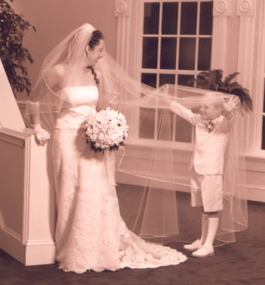 Ben and his Aunt Lee Anna horse around before the ceremony.