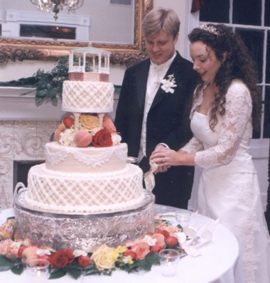 Reggie and Lee Anna stare intently at their cake, eagerly